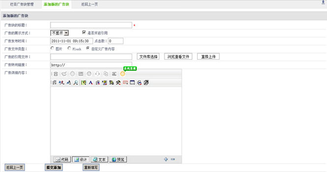 点击“添加新的广告块”添加广告,如下图;